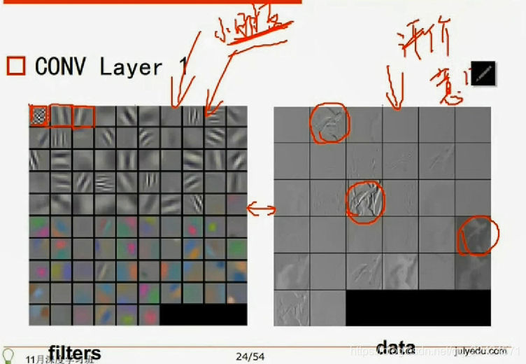 卷积层1后留下学习后的东西---轮廓,颜色等!