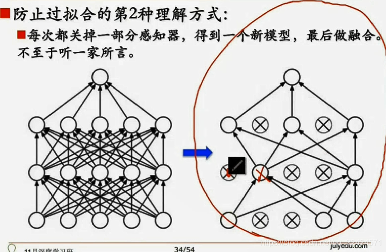 约束过拟合!----Dropout-----训练时关掉一部分学习单元!